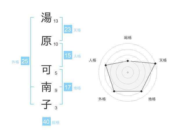 湯原 可南子さんを姓名の画数から五運を鑑定