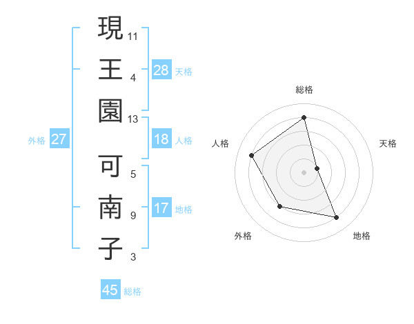 現王園 可南子さんを姓名の画数から五運を鑑定
