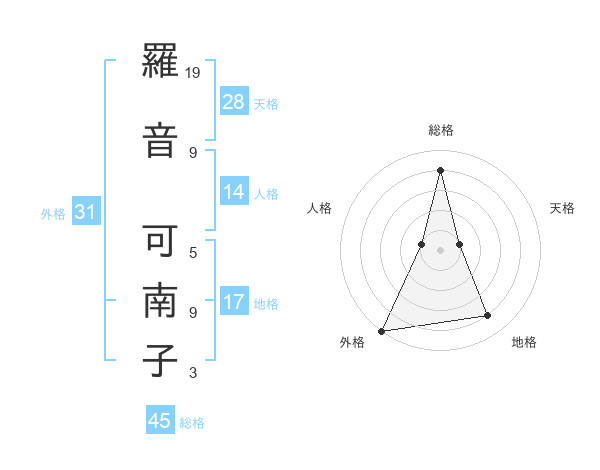 羅音 可南子さんを姓名の画数から五運を鑑定