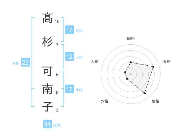 髙杉 可南子さんの天格は17画の4点!