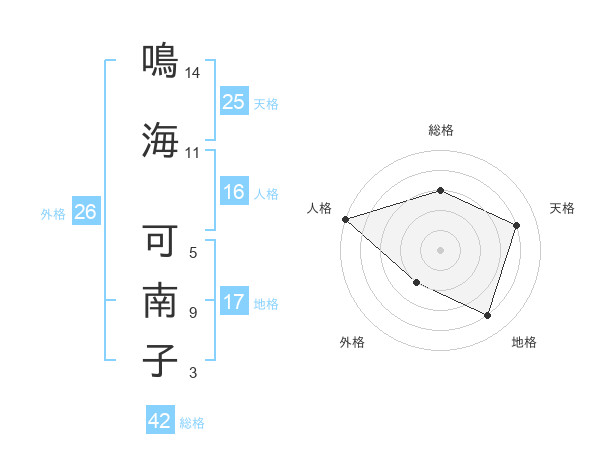 鳴海 可南子さんを姓名の画数から五運を鑑定