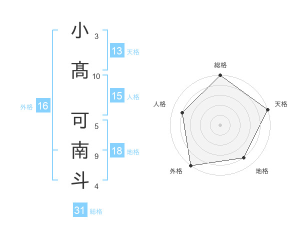 小髙 可南斗さんを姓名の画数から五運を鑑定