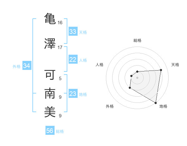 亀澤 可南美さんの外格は34画の2点!