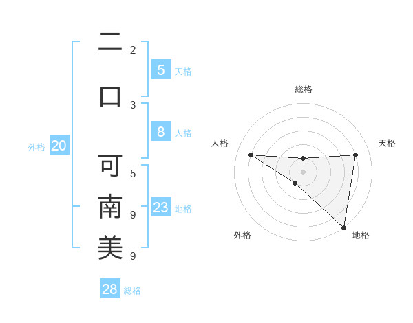 二口 可南美さんの天格は5画の4点!