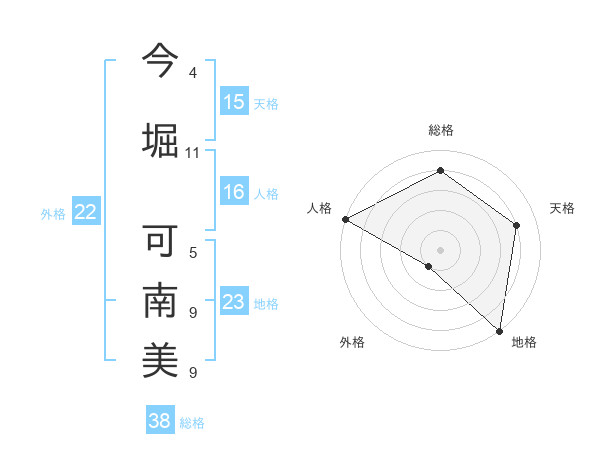 今堀 可南美さんの総格は38画の4点!
