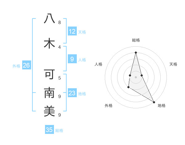 八木 可南美さんの総格は35画の4点!