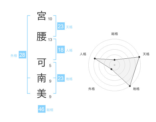 宮腰 可南美さんの天格は23画の5点!