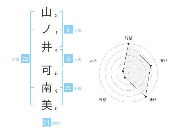 山ノ井 可南美さんを姓名の画数から五運を鑑定