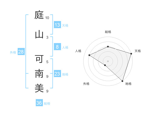 庭山 可南美さんの天格は13画の5点!