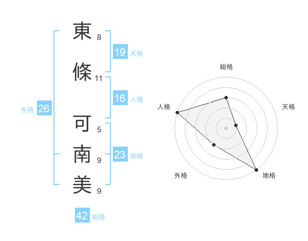 東條 可南美さんの総格は42画の3点!