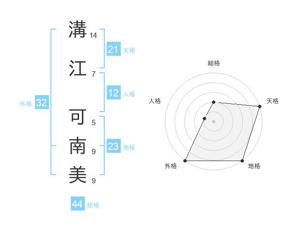 溝江 可南美さんの天格は21画の5点!