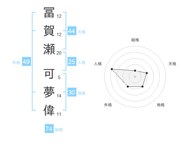 冨賀瀬 可夢偉さんの人格は25画の4点!