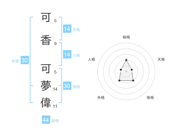 可香 可夢偉さんを姓名の画数から五運を鑑定
