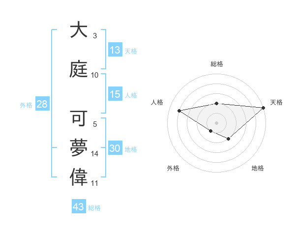 大庭 可夢偉さんの天格は13画の5点!