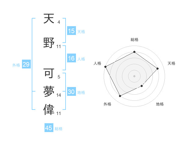 天野 可夢偉さんの総格は45画の4点!