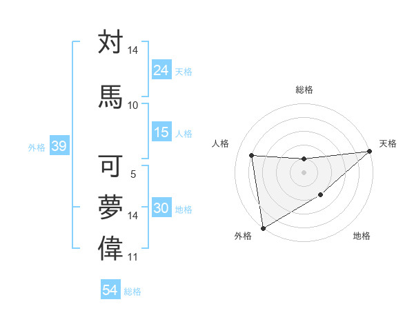 対馬 可夢偉さんの総格は54画の1点!