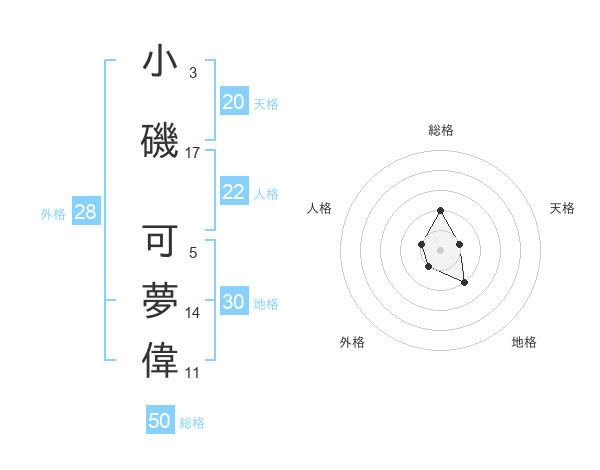 小磯 可夢偉さんの天格は20画の1点!
