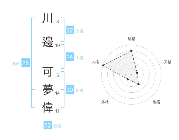 川邊 可夢偉さんの総格は52画の4点!
