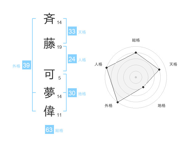 斉藤 可夢偉さんの外格は39画の5点!