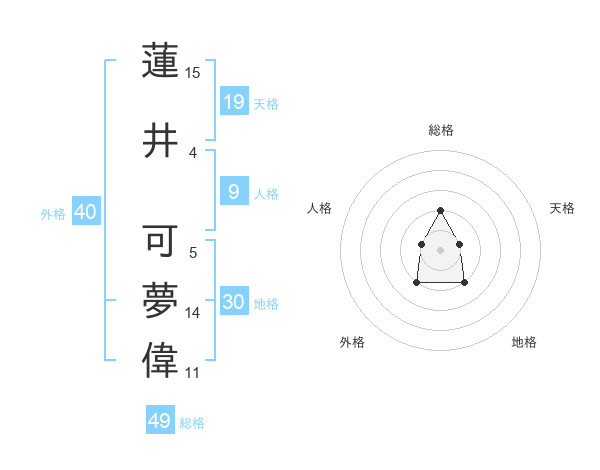 蓮井 可夢偉さんの総格は49画の2点!