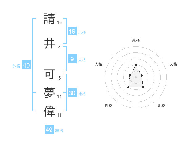 請井 可夢偉さんの総格は49画の2点!