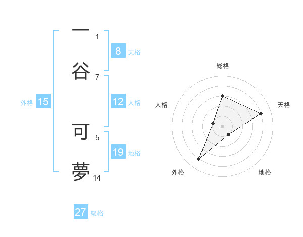 一谷 可夢さんの天格は8画の4点!