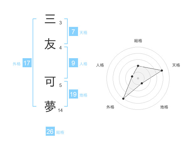 三友 可夢さんの総格は26画の2点!