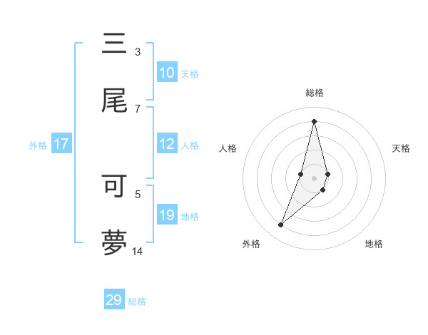 三尾 可夢さんの総格は29画の4点!