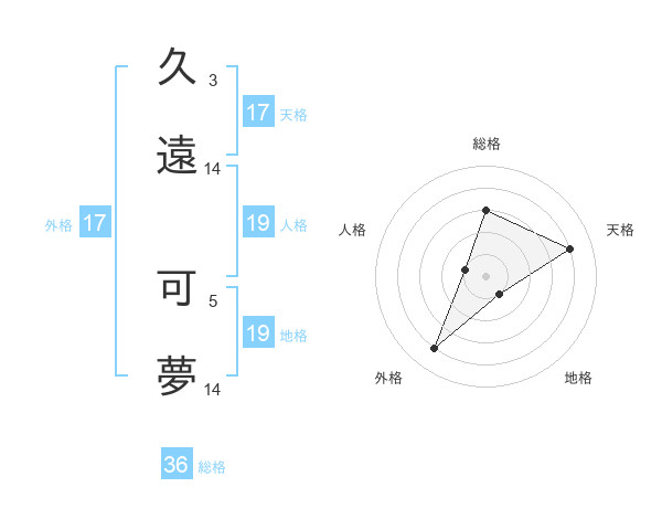 久遠 可夢さんの天格は17画の4点!