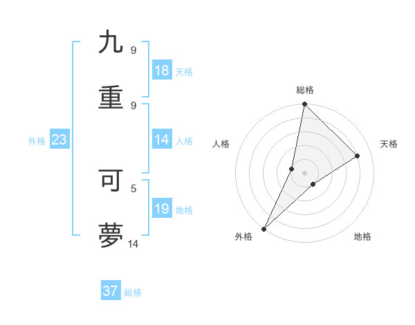 九重 可夢さんの総格は37画の5点!