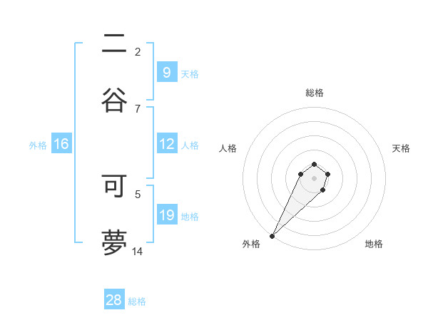 二谷 可夢さんを姓名の画数から五運を鑑定