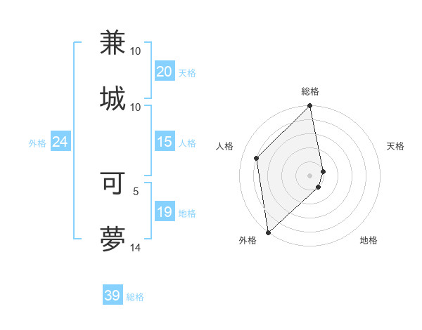 兼城 可夢さんを姓名の画数から五運を鑑定