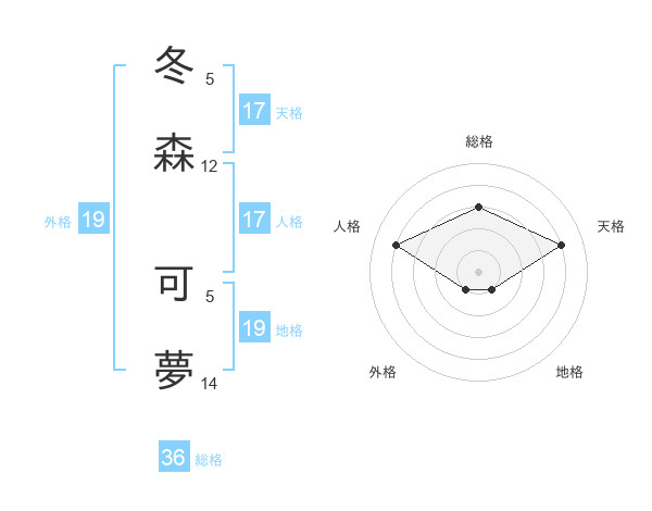 冬森 可夢さんの天格は17画の4点!