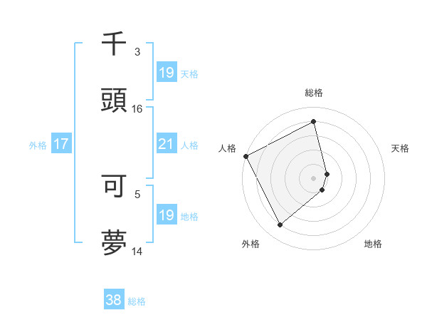 千頭 可夢さんの天格は19画の1点!