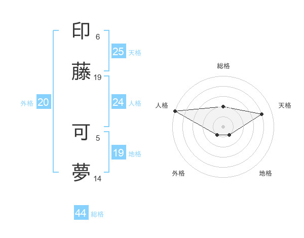 印藤 可夢さんの総格は44画の2点!
