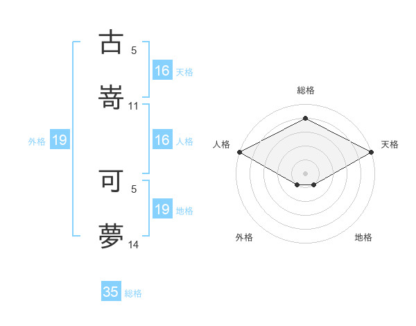 古嵜 可夢さんを姓名の画数から五運を鑑定