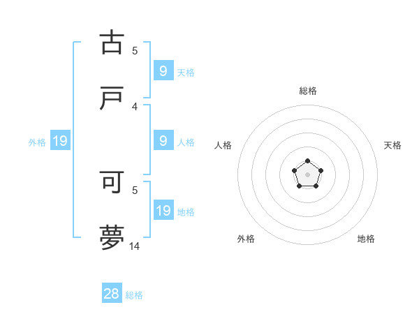 古戸 可夢さんを姓名の画数から五運を鑑定