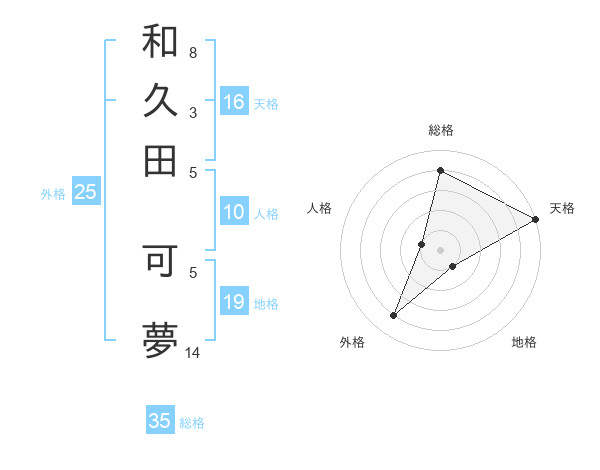 和久田 可夢さんを姓名の画数から五運を鑑定