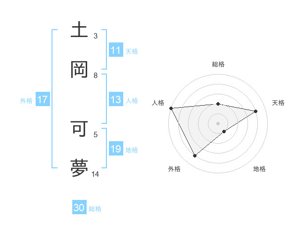 土岡 可夢さんの天格は11画の4点!