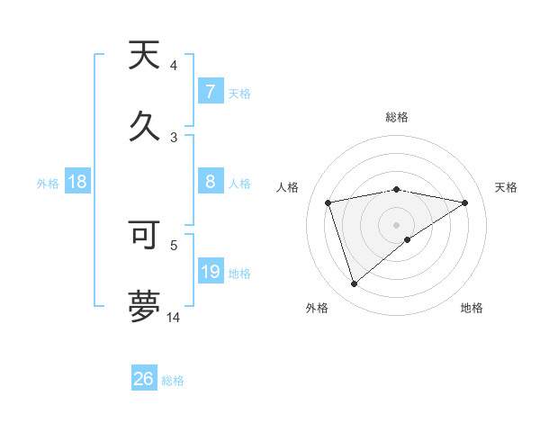 天久 可夢さんの総格は26画の2点!