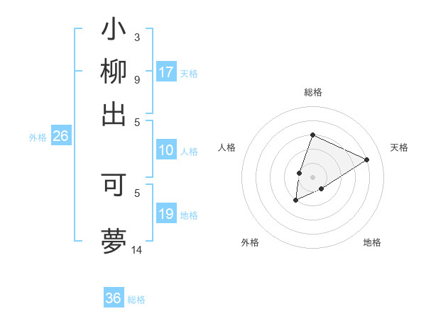 小柳出 可夢さんを姓名の画数から五運を鑑定
