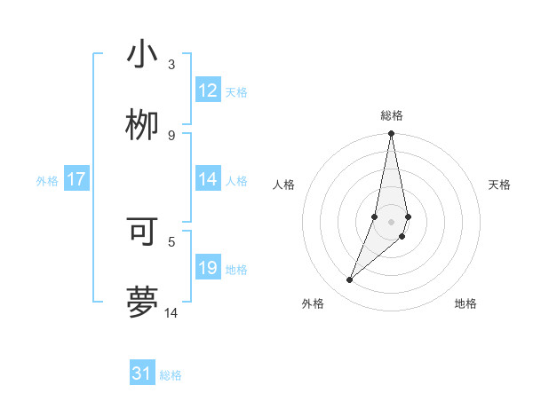 小栁 可夢さんの総格は31画の5点!