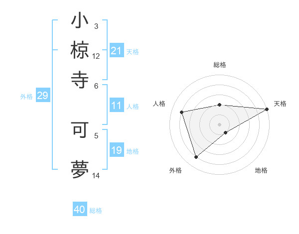 小椋寺 可夢さんを姓名の画数から五運を鑑定
