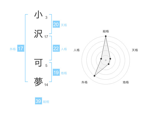 小沢 可夢さんの総格は39画の5点!