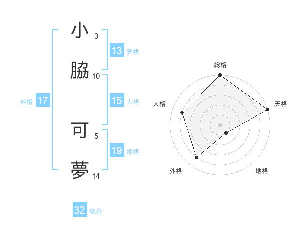 小脇 可夢さんを姓名の画数から五運を鑑定