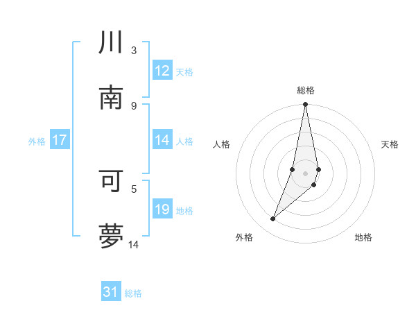 川南 可夢さんの天格は12画の1点!