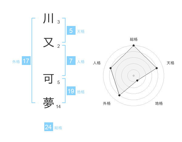 川又 可夢さんの天格は5画の4点!