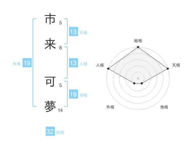 市来 可夢さんの天格は13画の5点!