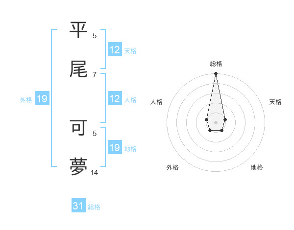 平尾 可夢さんの総格は31画の5点!