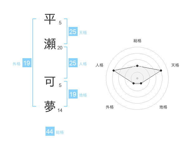 平瀬 可夢さんの天格は25画の4点!